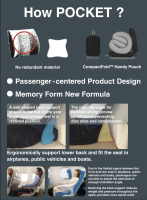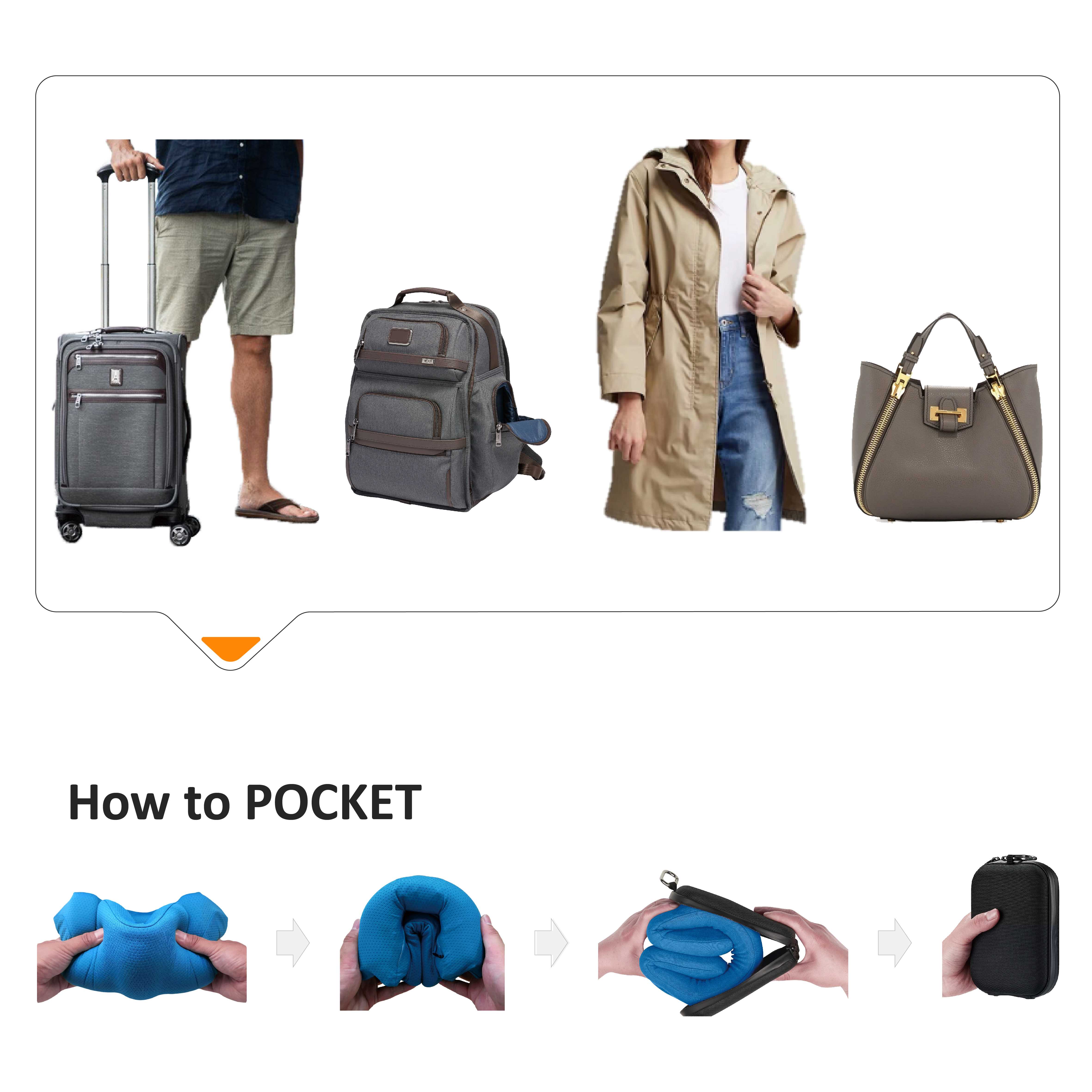- It folds up in a handy pouch nearly 1/6 dimension compared with the cushions in the market. It’s able to be carried in the pockets of your jacket, backpack, handbag or briefcase